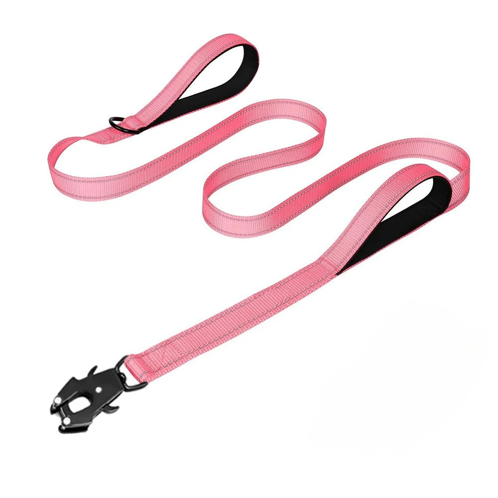 Robuste Reflektierende Nylon Hundeleine – Outdoor-Leine mit Weich Gepolsterten Zwei Griffen und Auto-Lock Frog Clip